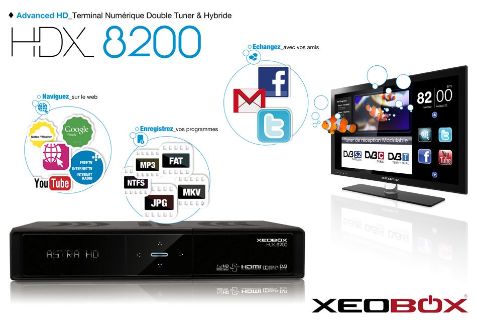 Le Xeobox HDX 8200 dispose de 2 SmardCard Reader Conax 7.0, de 2 accès à d’interface commune CI+ (Nouveau standard permettant une protection accrue des contenus particulièrement des contenus diffusés en Haute Définition), et vous ouvre ainsi le monde de la TV payante sans restriction et ceux en tout mode de réception !
